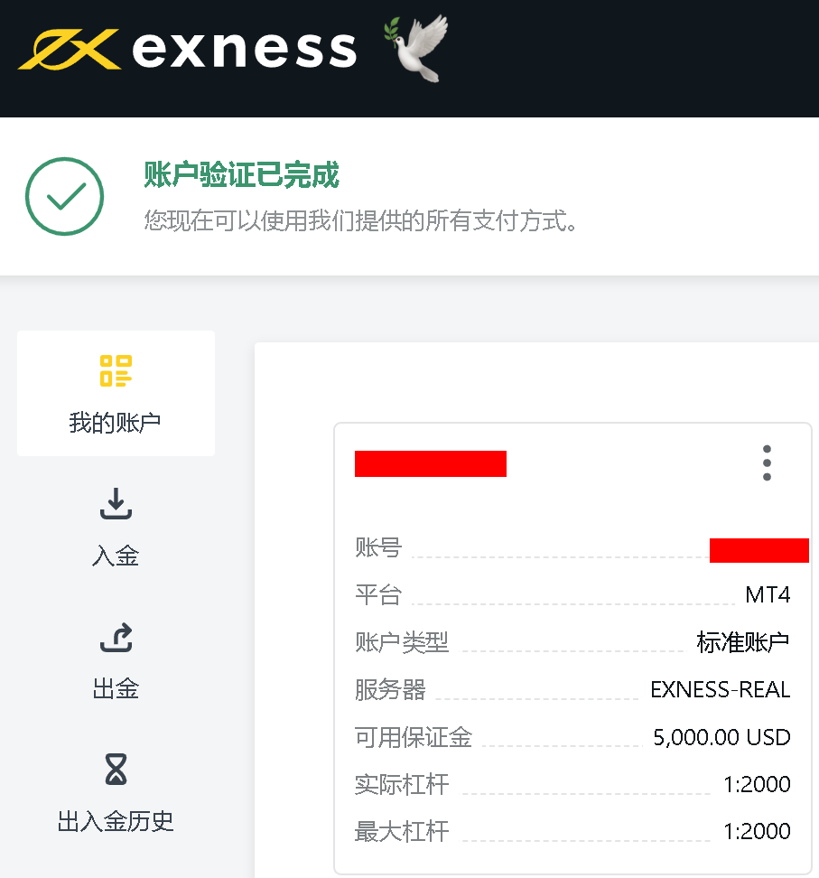Exness很早就支持银联入出金,入金即时到账,最晚30分钟到账。为了方便客户入金以及资金安全,Exness于2018年下半年,由第三方入金,改为客户自己转账入金。